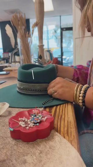 Book an appointment for one to 10 people to secure a designated space at the bar, our expert stylist and a complimentary beverage upon arrival. As you take a seat at the bar, you will be guided through the styling process and may then choose your hat and accessories that will create your truly unique hat.