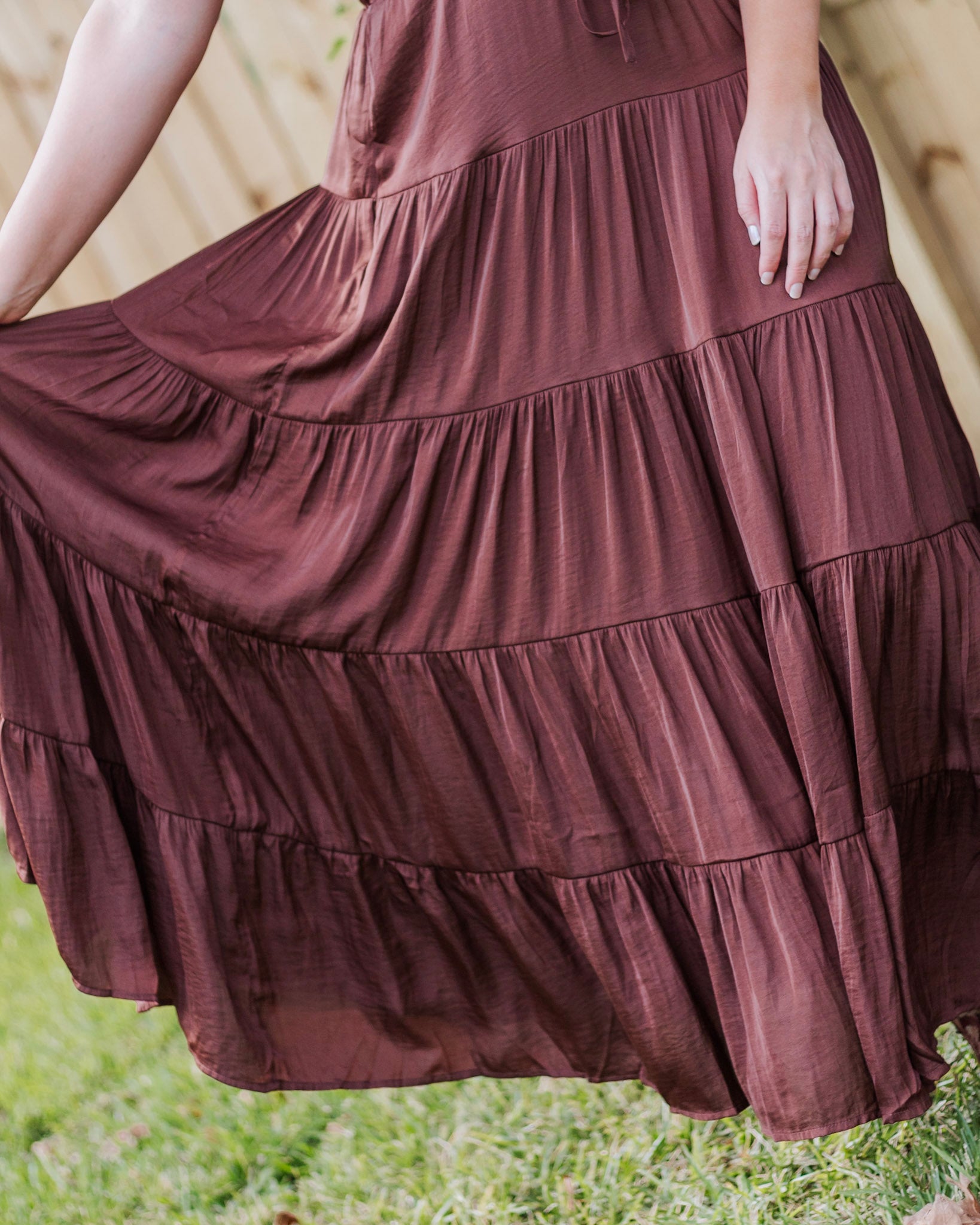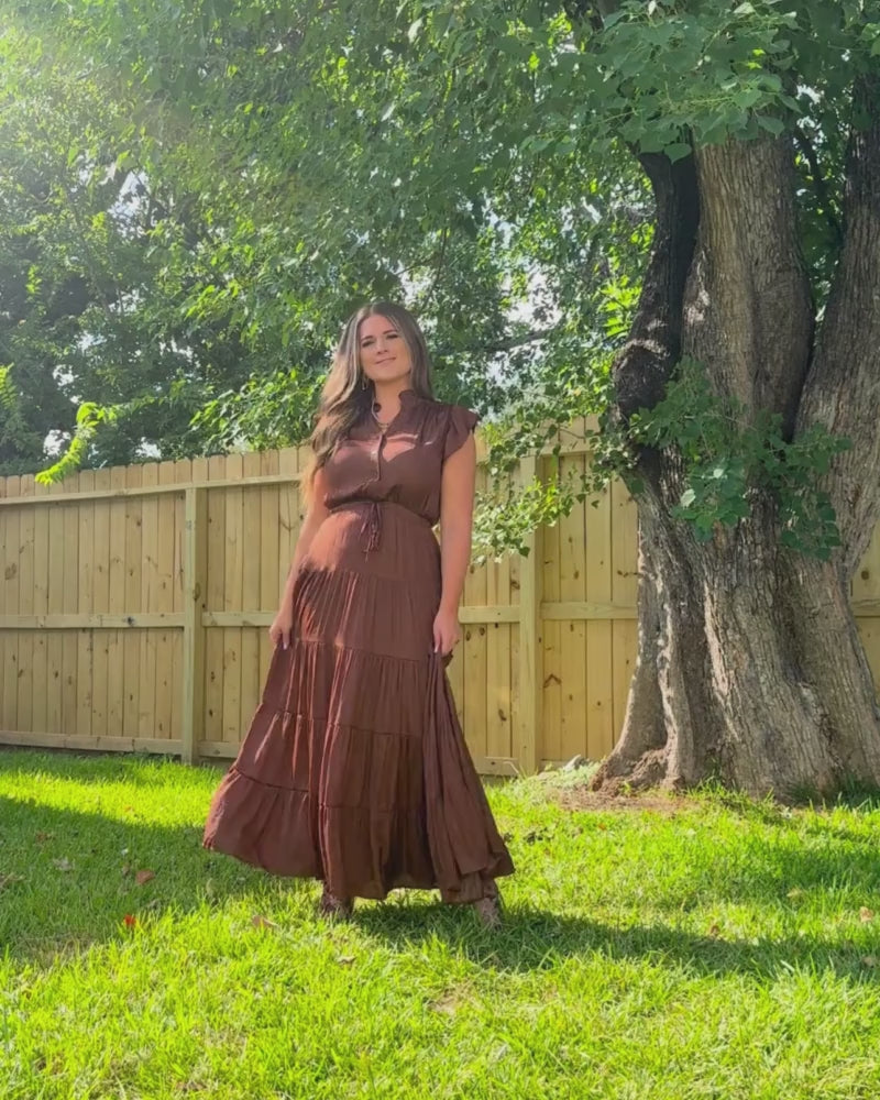 Step into fall elegance with the Charmed & Chic Maxi Dress — a flattering, tiered silhouette designed for twirls, transitions, and turning heads. This rich, earthy hue is one of the most in-demand colors of the season, making it a must-have for autumn weddings, family photos, or holiday festivities.
