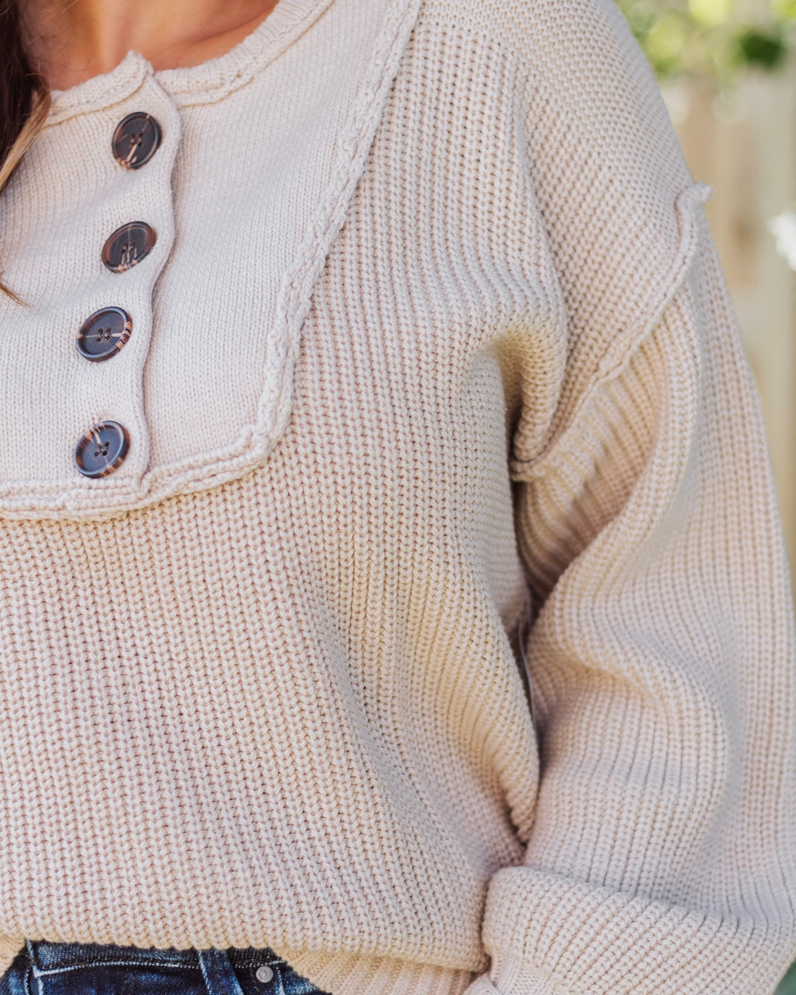 Wrap yourself in effortless comfort with the Seasonal Staple Ribbed Sweater, a fall must-have that brings warmth, texture, and timeless charm to your wardrobe. This creamy knit pullover features an elevated button-front placket and relaxed balloon sleeves, offering a chic twist on a classic look. Whether you're running errands or sipping cider fireside, this versatile neutral sweater pairs perfectly with jeans, leggings, or your favorite booties for a cozy-chic outfit you’ll wear on repeat.