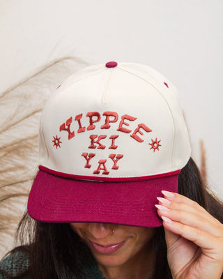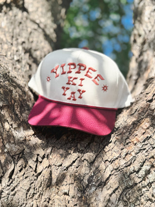 Get ready for some serious western vibes with our Yippee Ki Yay Hat in tan! The iconic red design will make you stand out in any crowd. Perfect for adding a touch of boldness to your outfit and showing off your wild side. Yee-haw!
