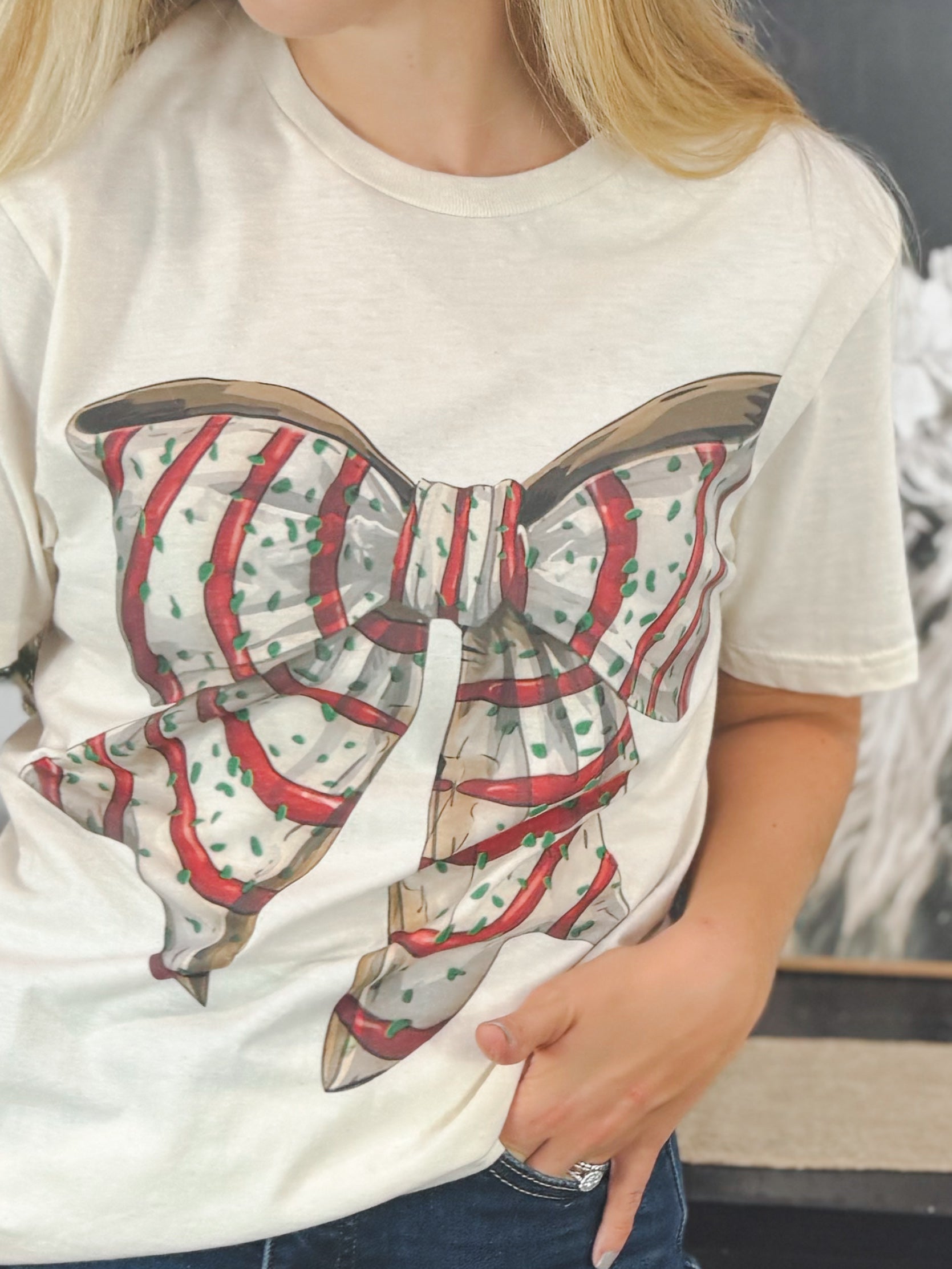 Channel your holiday cheer in this playful graphic. In a soft cream color, it is perfect for layering with cozy sweaters all season long.