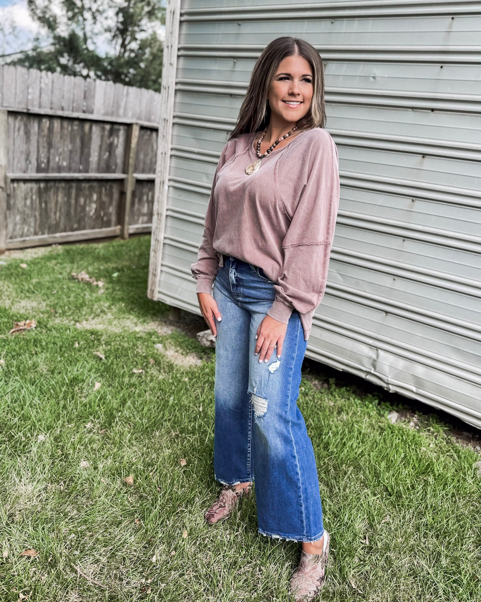 The Bonfire Side Oversized Tee is the perfect mix of casual comfort and chic boutique style. Crafted from a soft, lightweight knit with a relaxed silhouette, this top drapes beautifully for an effortlessly flattering look. The muted taupe tone adds a feminine touch while staying versatile for every season — perfect for pairing with your favorite jeans, booties, or layered jewelry for an elevated everyday outfit.