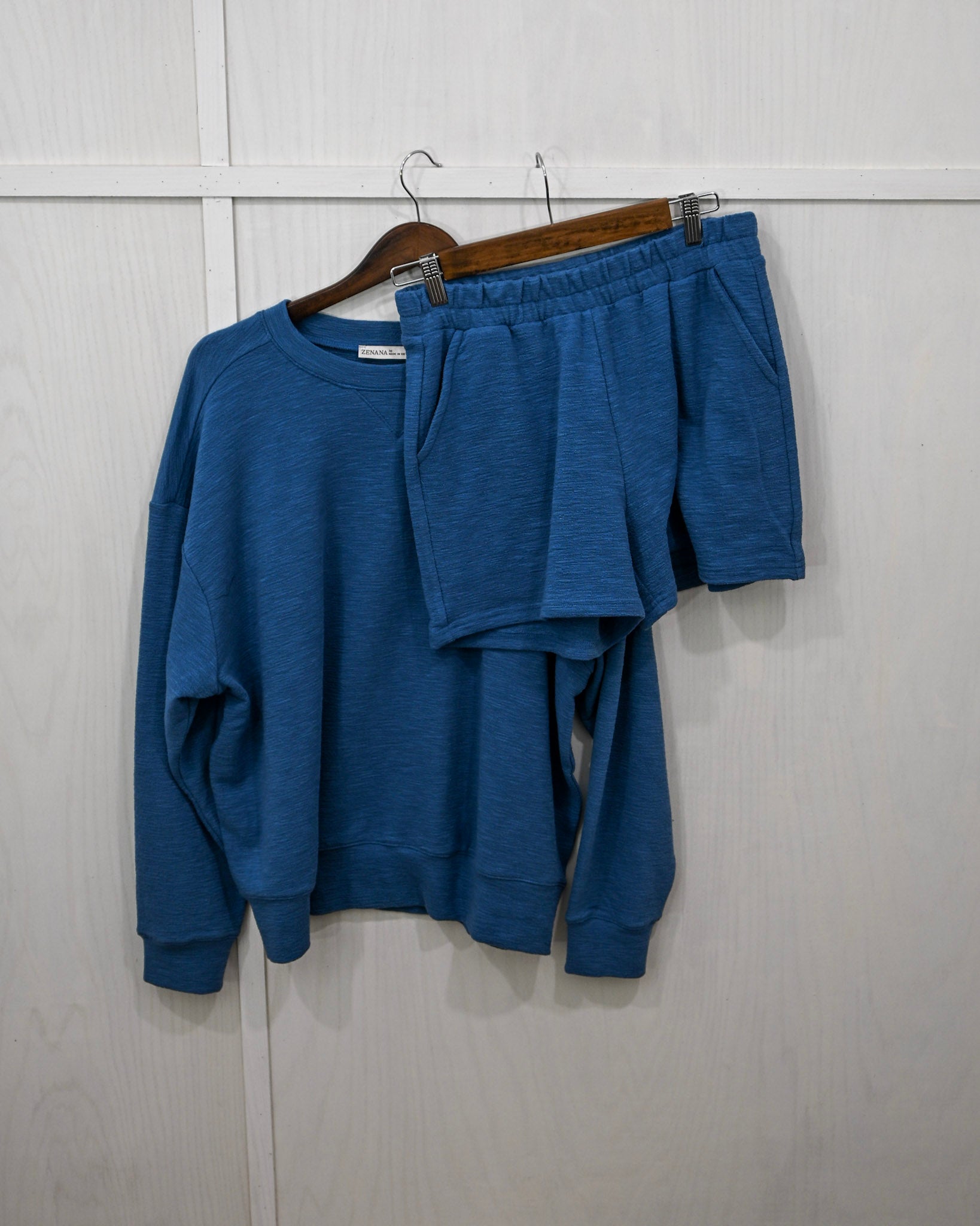 Comfort just got a boutique-worthy upgrade. This blue lounge long sleeve and shorts set is made for the days when you want to feel relaxed but still look effortlessly put together. Designed with a soft, lightweight feel and an easy, relaxed fit, it’s the kind of set you’ll reach for from morning coffee runs to cozy nights in.