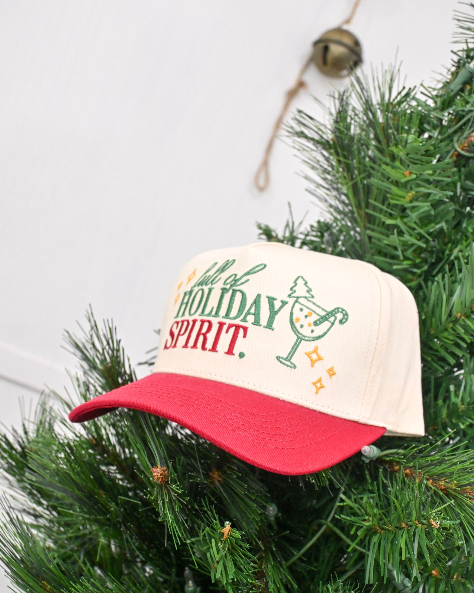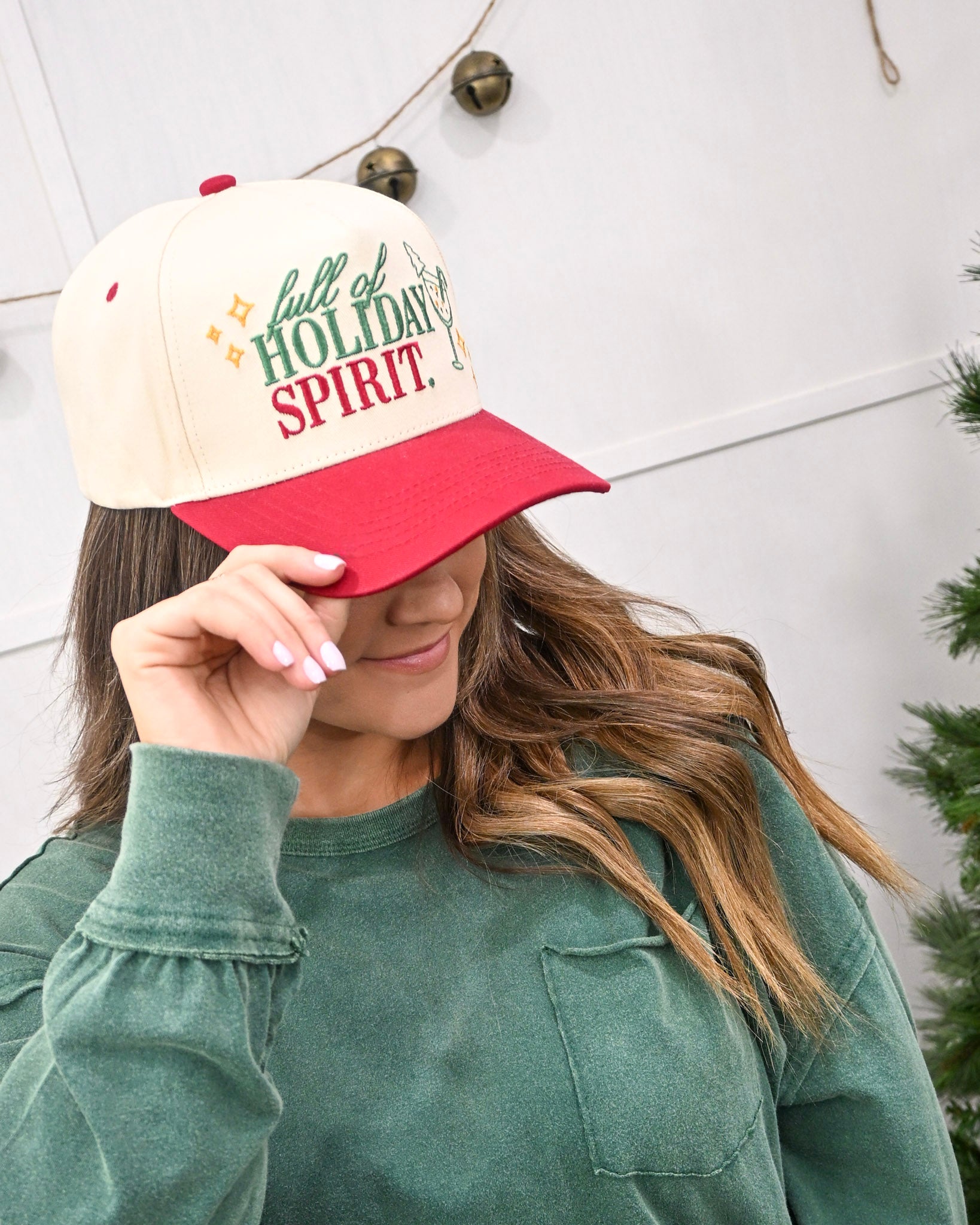 Bring the cheer everywhere you go with our Full of Spirit Holiday Hat. Featuring festive embroidered lettering and a cute holiday cocktail graphic, this hat is the perfect mix of playful, merry, and totally wearable. With its cream front and bold red brim, it adds the perfect pop of holiday fun to any casual outfit — from Christmas shopping to tree decorating and all the spirited moments in between.