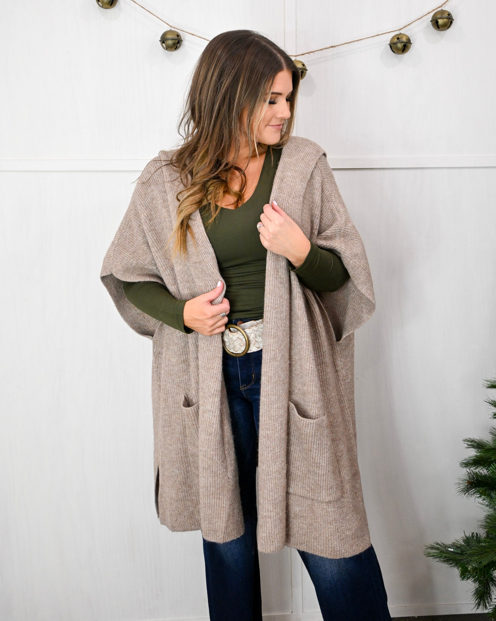 Wrap yourself in comfort and classic style with our Sable Sands Knit Poncho — the ultimate layer for chilly days and effortless outfits. This soft, ribbed knit cardigan drapes beautifully with an open-front design and roomy pockets for that laid-back yet polished boutique look. Whether you’re running errands or heading out for a cozy night, it’s the perfect piece to keep you warm while staying chic.
