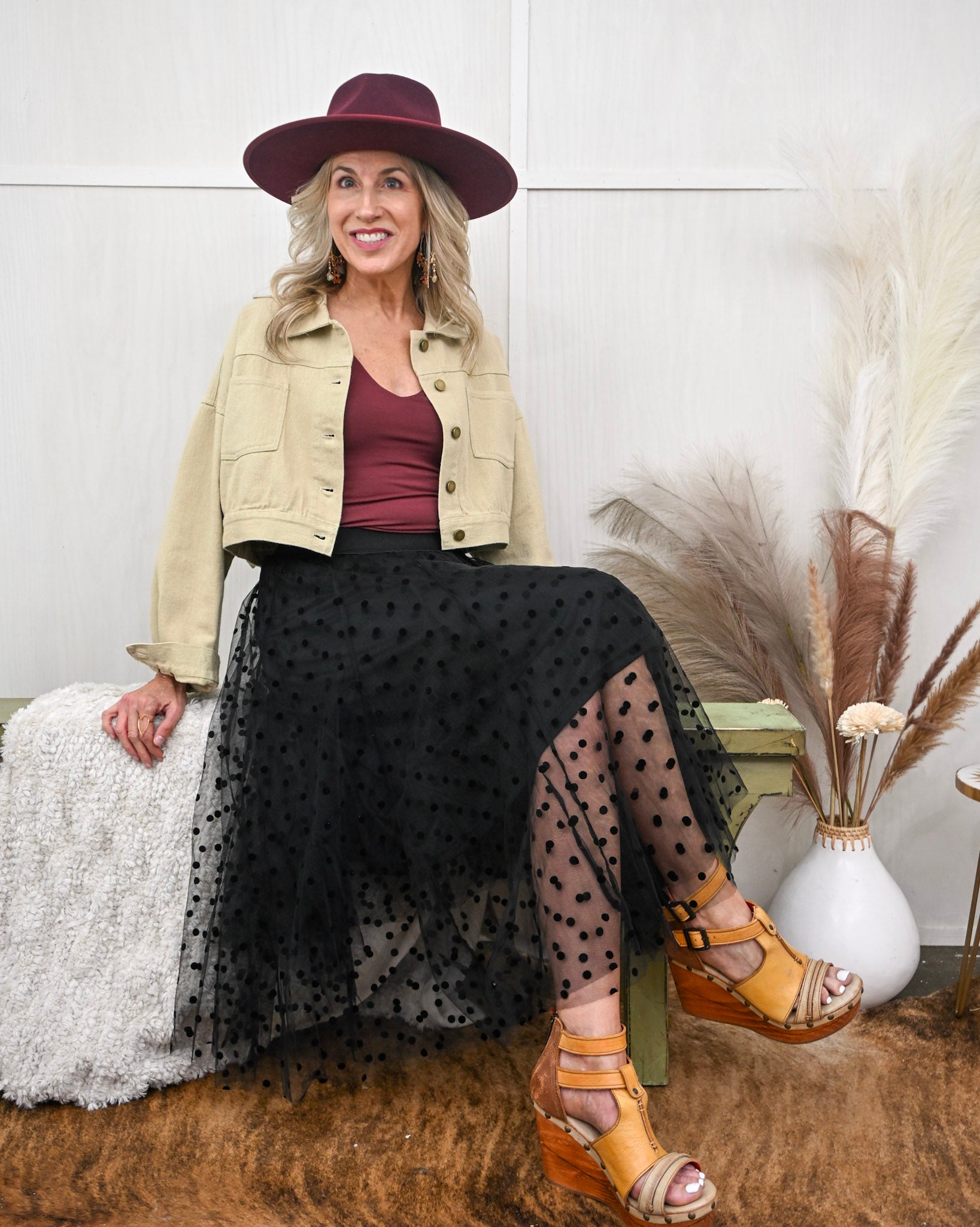 Soft, romantic, and effortlessly chic—the Soft Romance Tulle Skirt is made for the moments when you want to feel feminine without trying too hard. Layers of airy tulle float beautifully with every step, while the subtle dot texture adds just the right amount of playful charm. Whether styled casually with a graphic tee and denim jacket or dressed up for date night, this skirt brings timeless elegance to your everyday wardrobe.