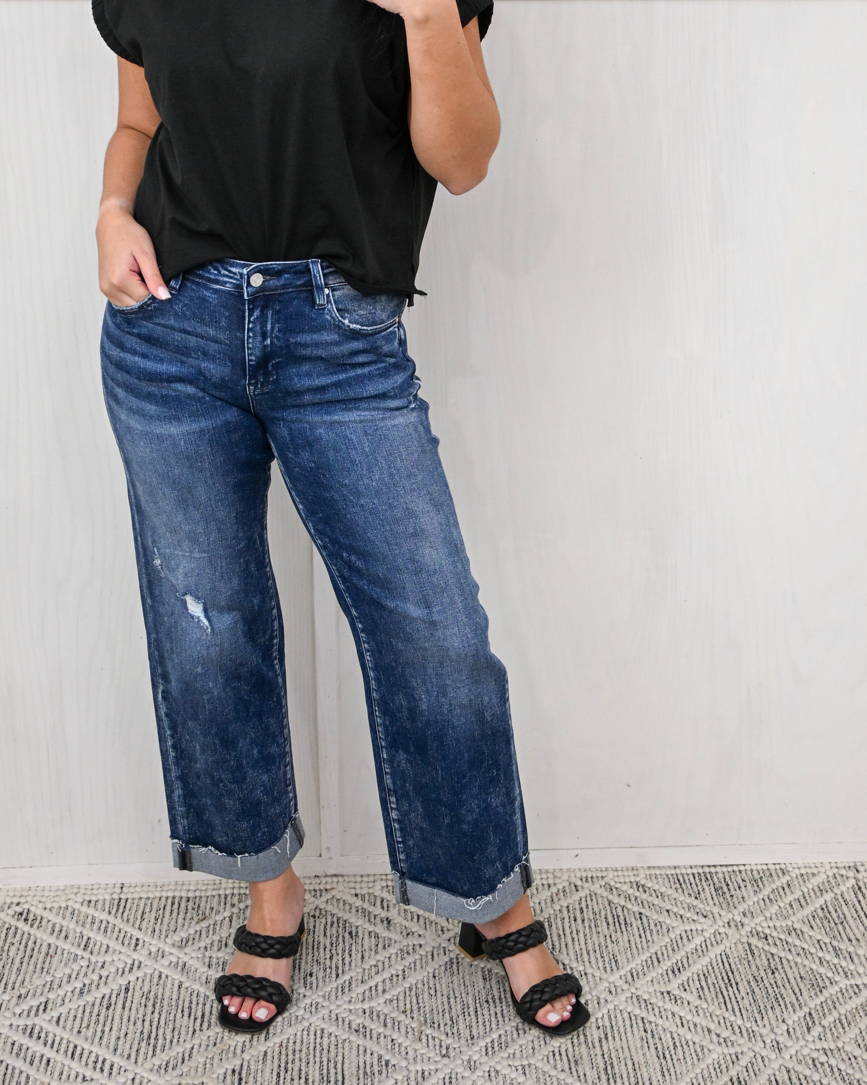 Step into timeless style with our Connor Mid-Rise Straight Jean – a versatile denim staple with major attitude. These dark wash jeans feature a classic straight-leg silhouette with a relaxed fit, distressing on the leg, and an eye-catching raw cuffed hem for an effortlessly cool finish. Perfect for pairing with boots, mules, or sneakers, they’ll take you from weekday errands to weekend outings in total comfort and style.