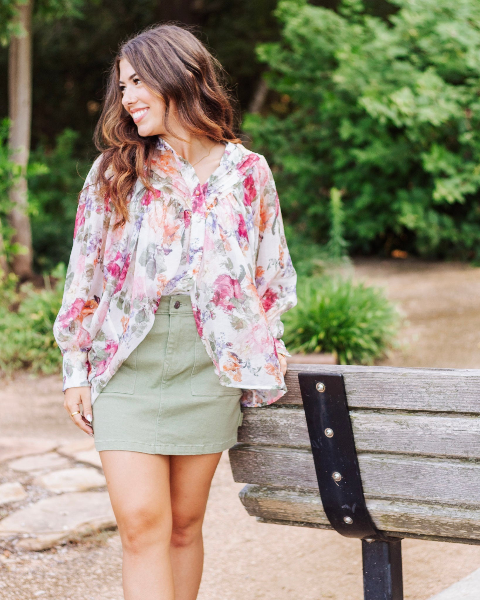 Flirty, functional, and full of charm—this olive green mini skirt is a must-have for your transitional wardrobe. Featuring front patch pockets, sturdy cotton fabric, and a flattering high-rise fit, it’s easy to dress up with boots or keep casual with sneakers. A true everyday staple with a playful twist!