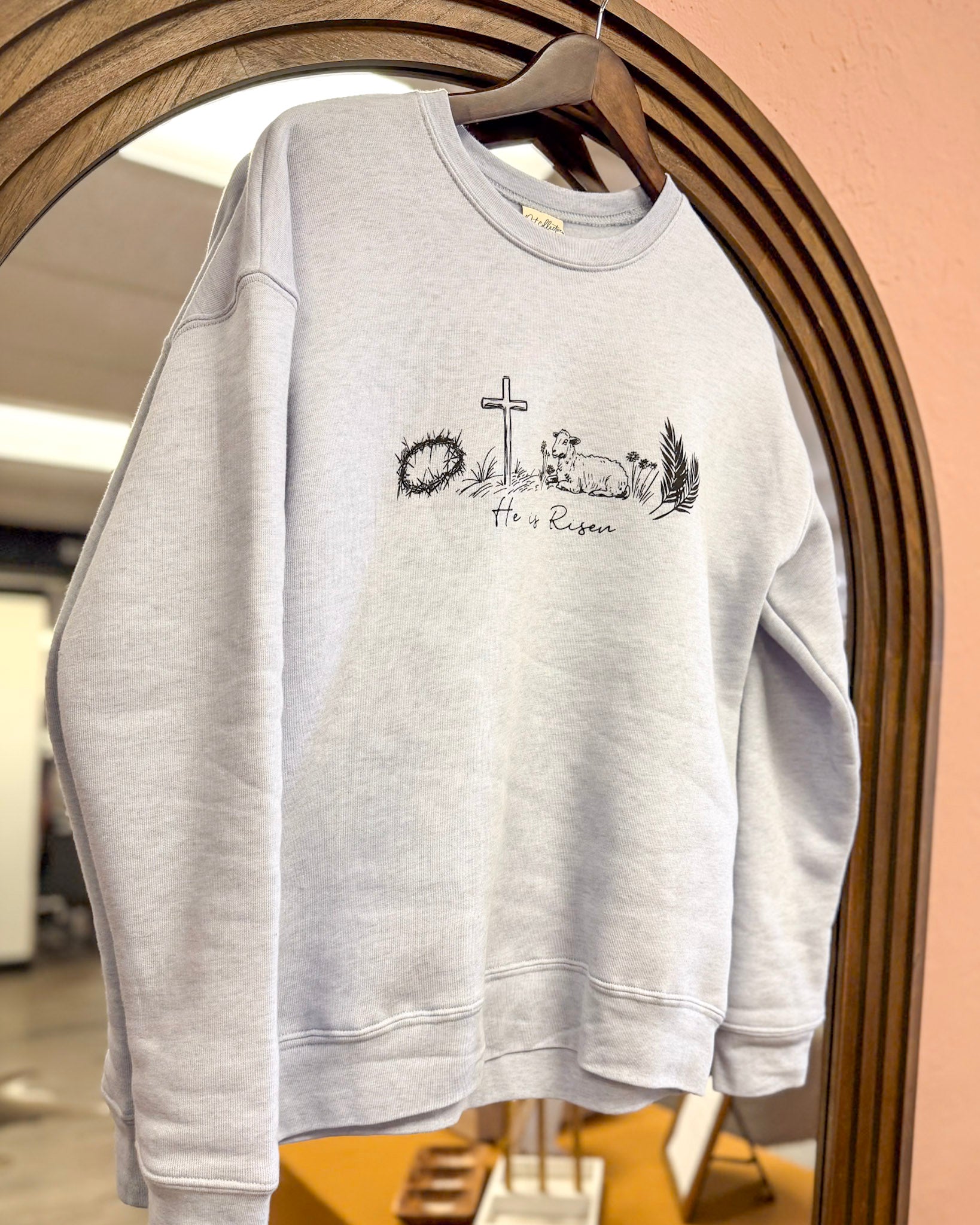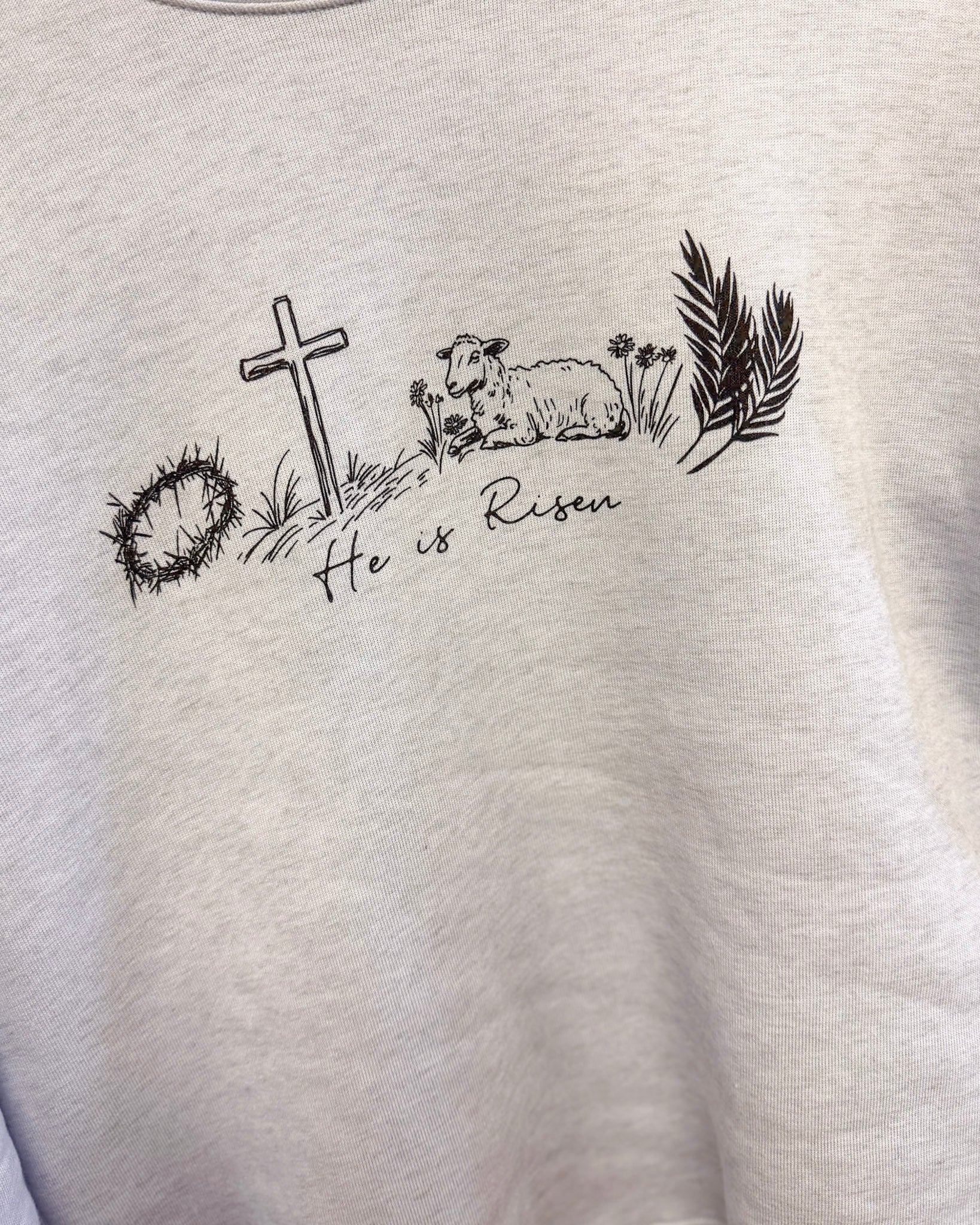Simple, meaningful, and full of truth — the He Is Risen Sweatshirt is more than just a cozy layer, it’s a statement of faith you can wear every day. Featuring a delicate, minimal graphic of a cross, crown of thorns, and lamb, this design beautifully captures the message of hope, sacrifice, and resurrection.