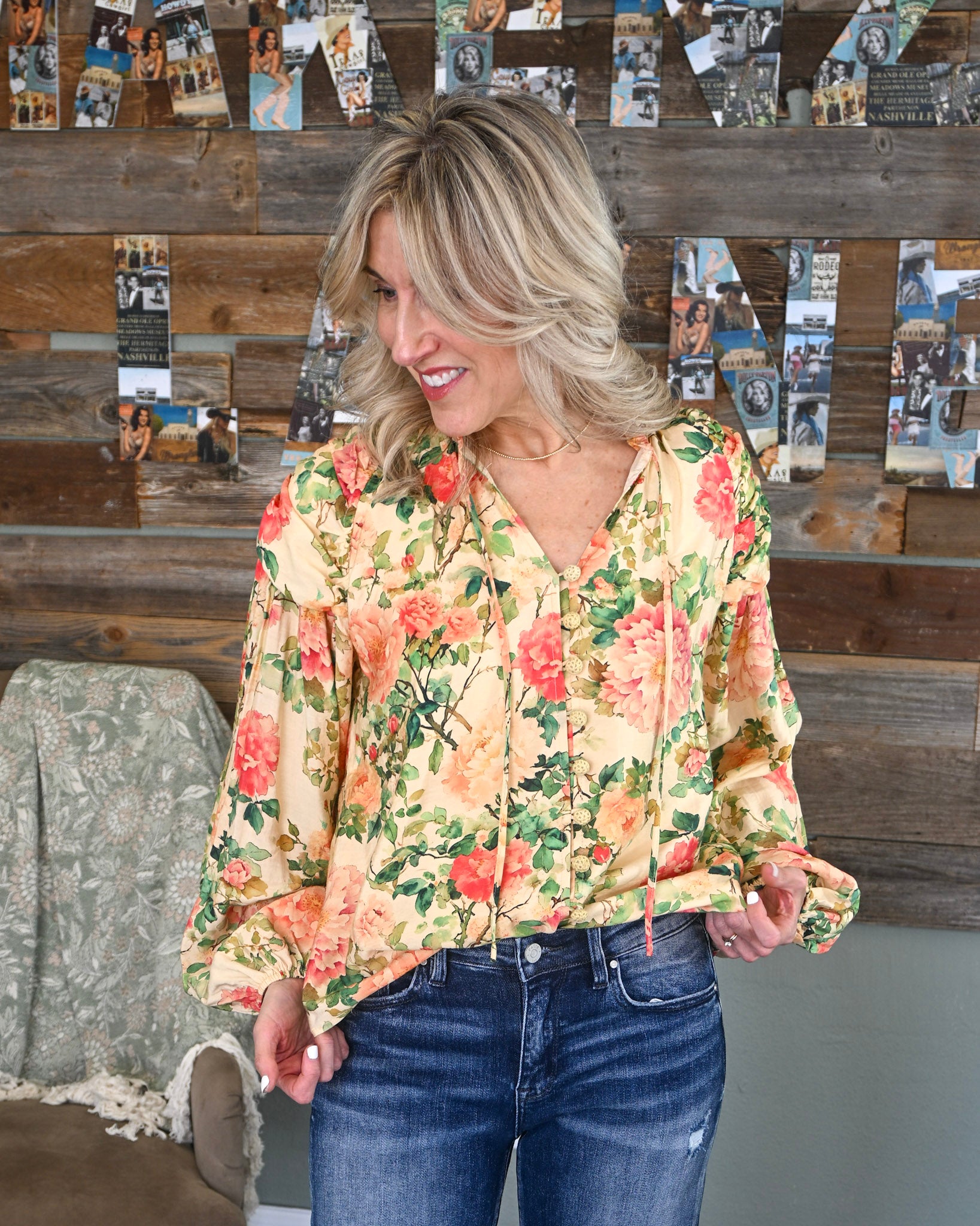Bring a touch of effortless charm to your workday or weekend with the Terra-Cotta Bloom Top. This timeless top features a soft, romantic floral print in warm tones of coral, cream, and green that instantly brightens your look. Perfectly “office-approved,” it transitions from desk to dinner with ease—pair it with tailored slacks or denim for a polished yet relaxed vibe.